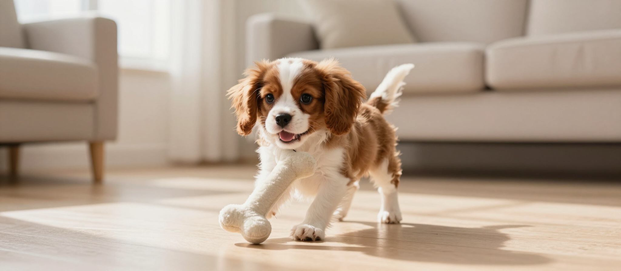 A perfect blend of Cavalier King Charles Spaniel and Poodle, offering a mix of intelligence and charm in a small package.